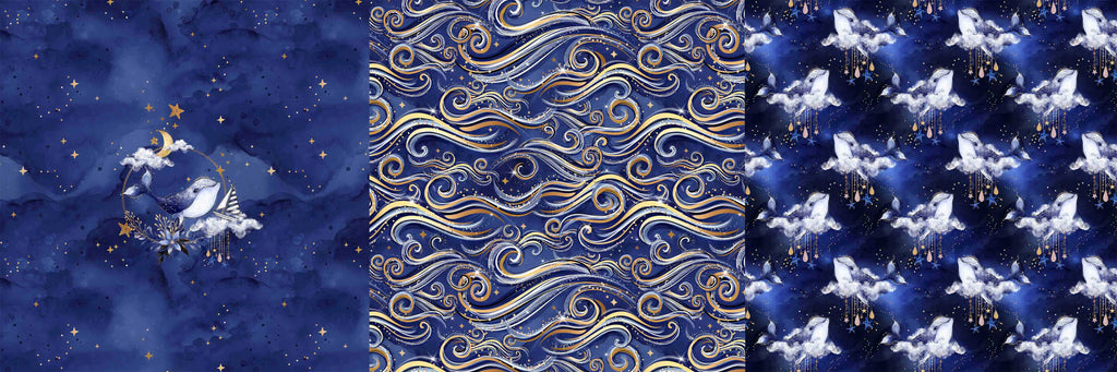 Each panel has a 18" wide main panel with graphic and two additional panels which are 18" wide also on Vinyl and 20" wide on Canvas, Cotton Woven, and Cotton Woven Stretch.